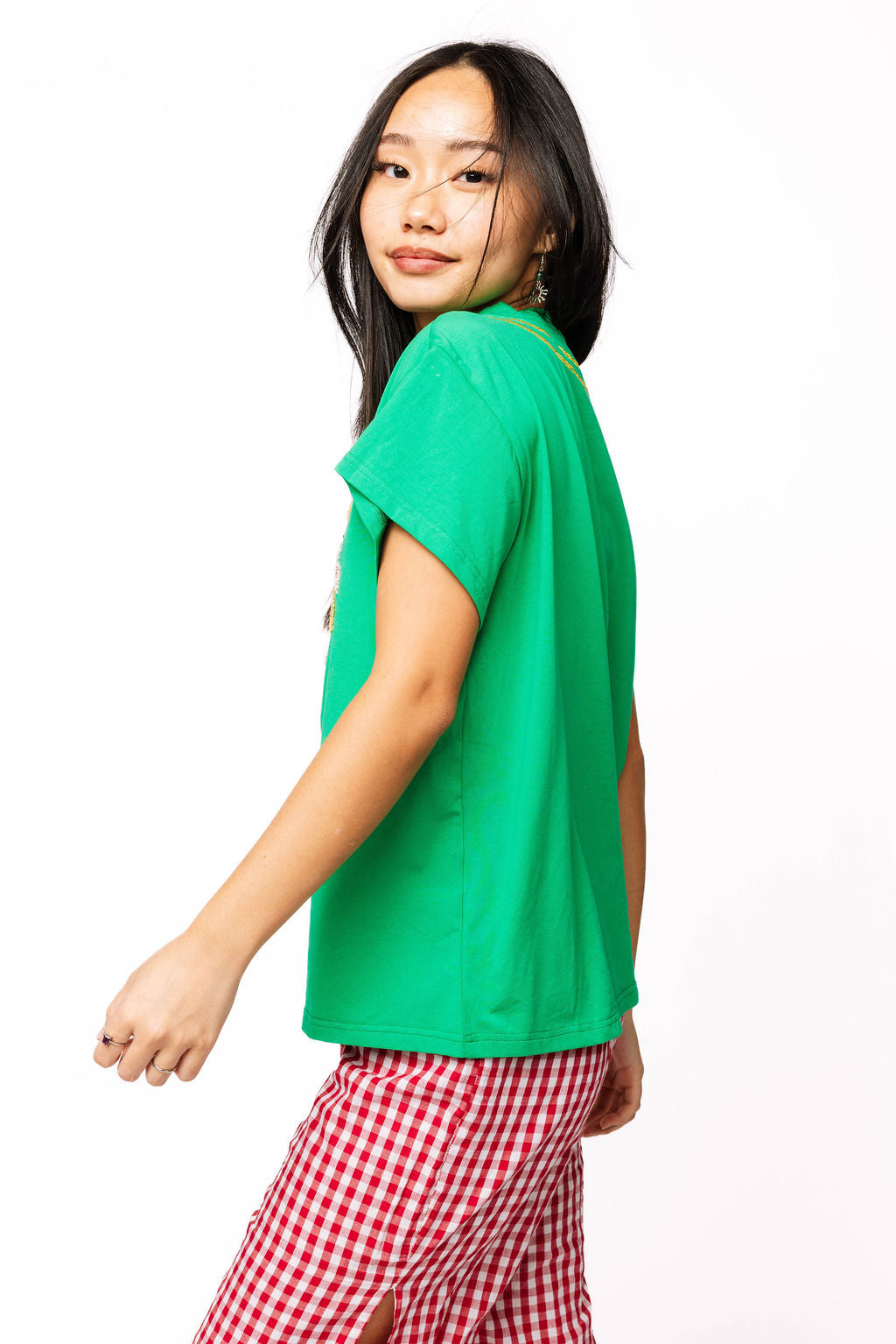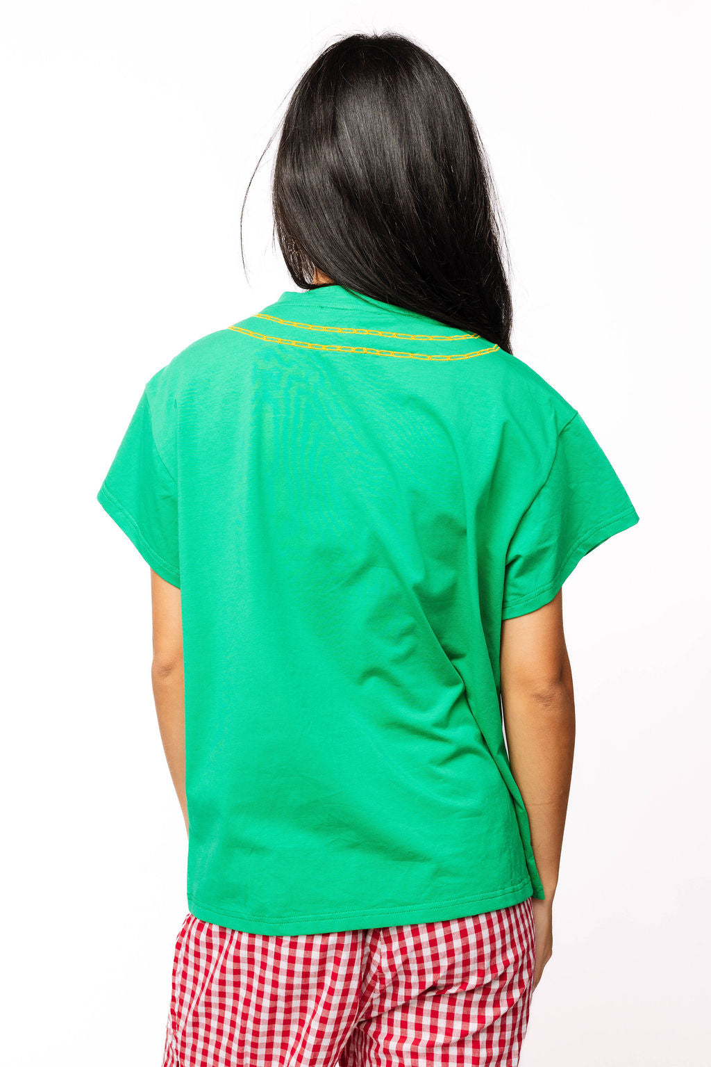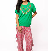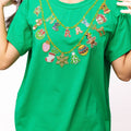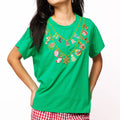 Celebrate the season with our Bright Green Christmas Icons Necklace Tee! This fun green tee showcases a charming necklace design adorned with festive Christmas icons, bringing holiday cheer to your wardrobe. Designed to fit true to size, it’s perfect for cozy gatherings or spirited celebrations. Add a playful touch to your festive outfit with this merry tee!