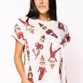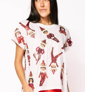 This crisp white tee brings a sprinkle of magic to your wardrobe with playful sequin elves scattered all over. Soft and comfortable, it’s perfect for adding a dash of sparkle and fun to your casual outfits. Whether you're spreading good cheer or just feeling festive, this tee turns every day into an enchanting adventure.