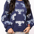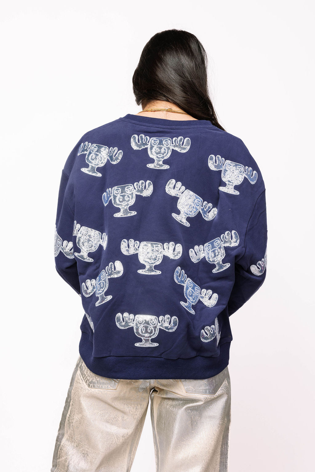 Cozy up in this navy sweatshirt showcasing the beloved Marty Moose mug from National Lampoon's Christmas Vacation. Perfect for fans who want to bring a touch of holiday mischief and charm to their casual wardrobe, this playful design sparks nostalgia and fun all year round.