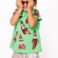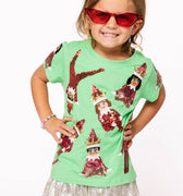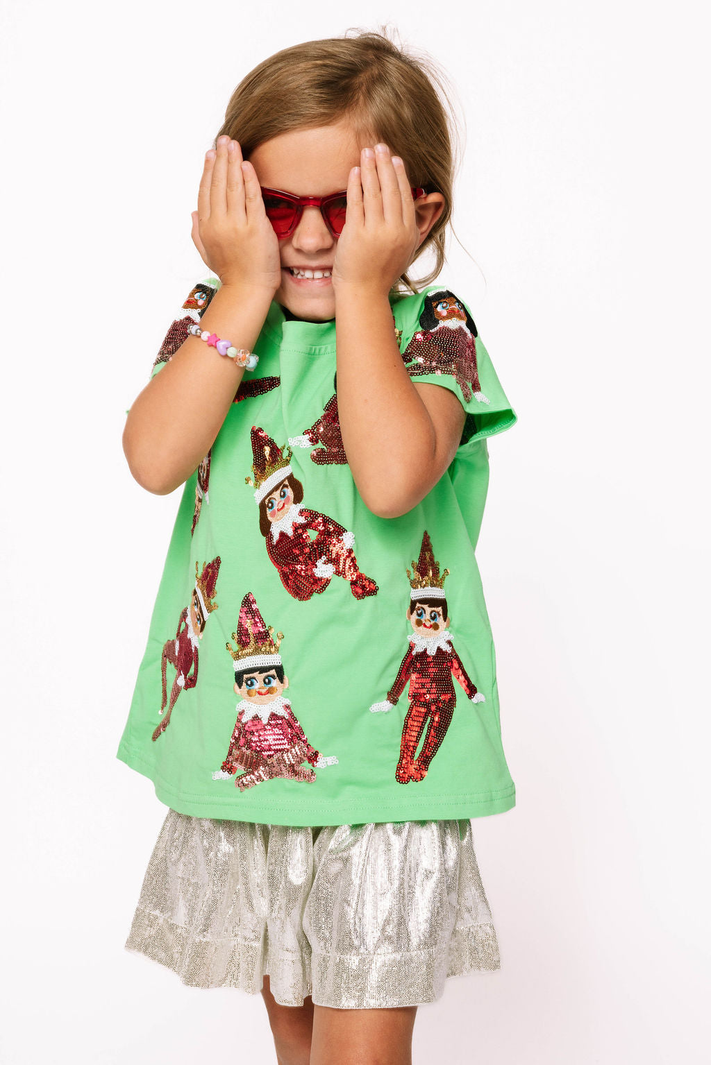 Bring a touch of magic to your little one’s wardrobe with this kids green tee featuring sparkling sequin elves scattered all over. Soft and comfortable, it’s perfect for playful days filled with imagination and holiday cheer. Watch as the shimmering elves catch the light and your child’s smile grows even brighter!