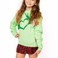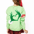 This kids' green sweatshirt brings holiday fun to life with soft, fuzzy Grinch hands hugging the front. Cozy and playful, it's perfect for little ones who love a touch of mischief and warmth during festive days.