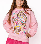 This kids' pink sweatshirt adds a fun Candyland twist to our iconic Queen of Sparkles logo. Soft and cozy, it’s perfect for little ones who love bright colors and playful designs. Whether for playtime or chilly days, this sweatshirt brings a sweet, magical vibe to any outfit.