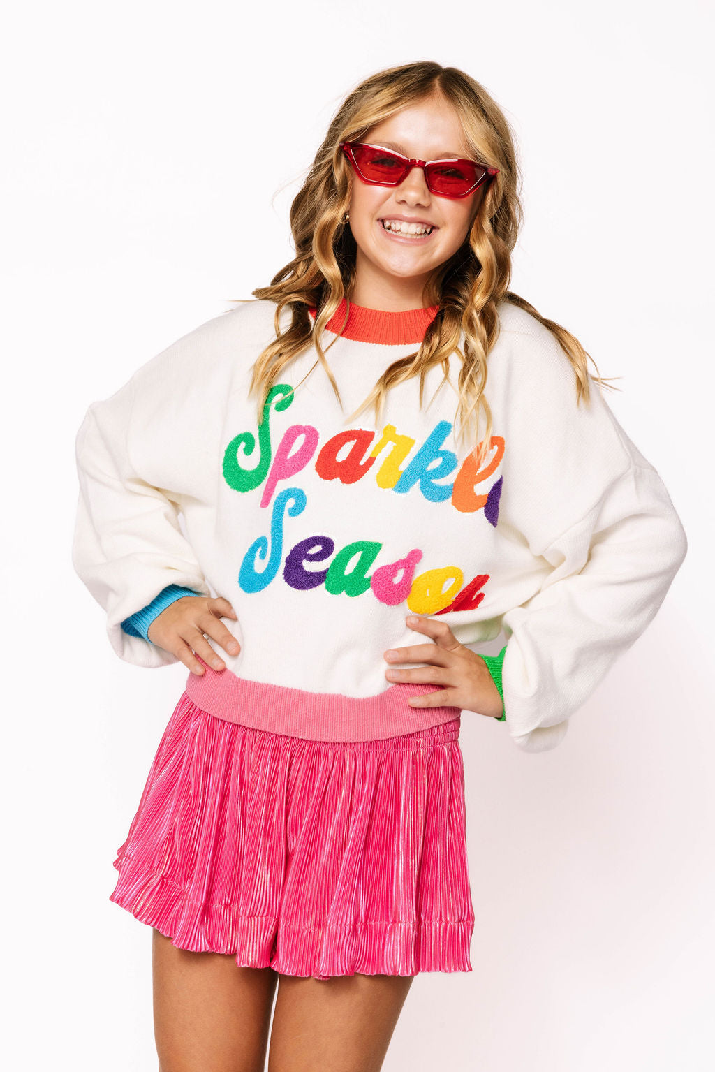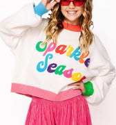This cozy white sweater brightens up any little wardrobe with its playful multi-color "Sparkle Season" print. Soft and comfy, it’s perfect for adding a cheerful pop of color to chilly days while keeping kids stylish and warm.