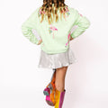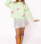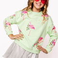 This cozy sweatshirt features a cheerful mint-colored flamingo decked out in a festive Christmas light necklace, perfect for adding holiday fun to your child's wardrobe. Soft and comfortable, it’s ideal for keeping kids warm while spreading joyful vibes during the season. A playful way to celebrate and stay cozy!
