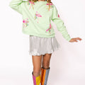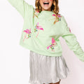 Kids Mint Flamingo Wearing Christmas Light Necklace Sweatshirt