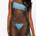 Elevate your style with the Black Multi Rhinestone Mesh Coverup Dress, designed to add a dazzling touch to any outfit. Its sheer mesh fabric is adorned with sparkling rhinestones that catch the light beautifully, making it perfect for layering over your favorite pieces. Lightweight and eye-catching, this coverup dress effortlessly blends glamour with comfort, ensuring you stand out at parties, beach outings, or special events. Make every moment shine with this stunning, versatile addition to your wardrobe.