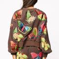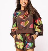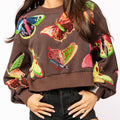 Wrap yourself in cozy fun with the Brown & Neon Butterfly Sweatshirt. Its warm brown base pops with vibrant neon butterflies, adding a playful burst of color to your casual look. Perfect for days when you want comfort with a spirited twist, this sweatshirt keeps you feeling snug while showing off your bright personality.