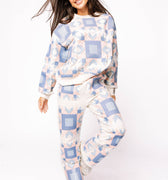 Snuggle into our Ivory, Blue & Light Pink Patchwork Pants for the ultimate cozy vibe. With its fun mix of colors and soft fabric, it’s perfect for chilly days or lounging around. Pair it with the matching sweatshirt to create a full-on comfy, playful outfit that's as cute as it is comfy.