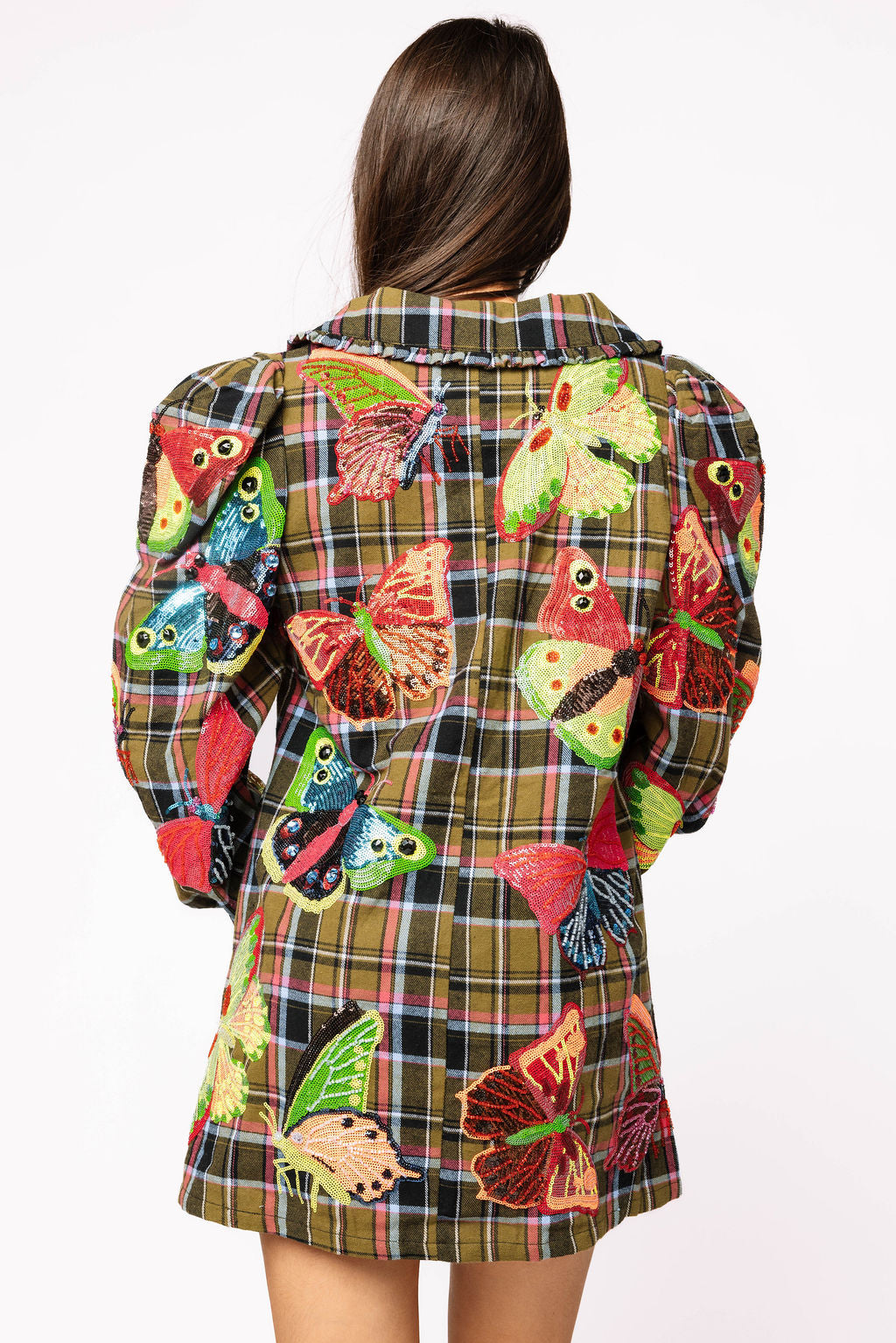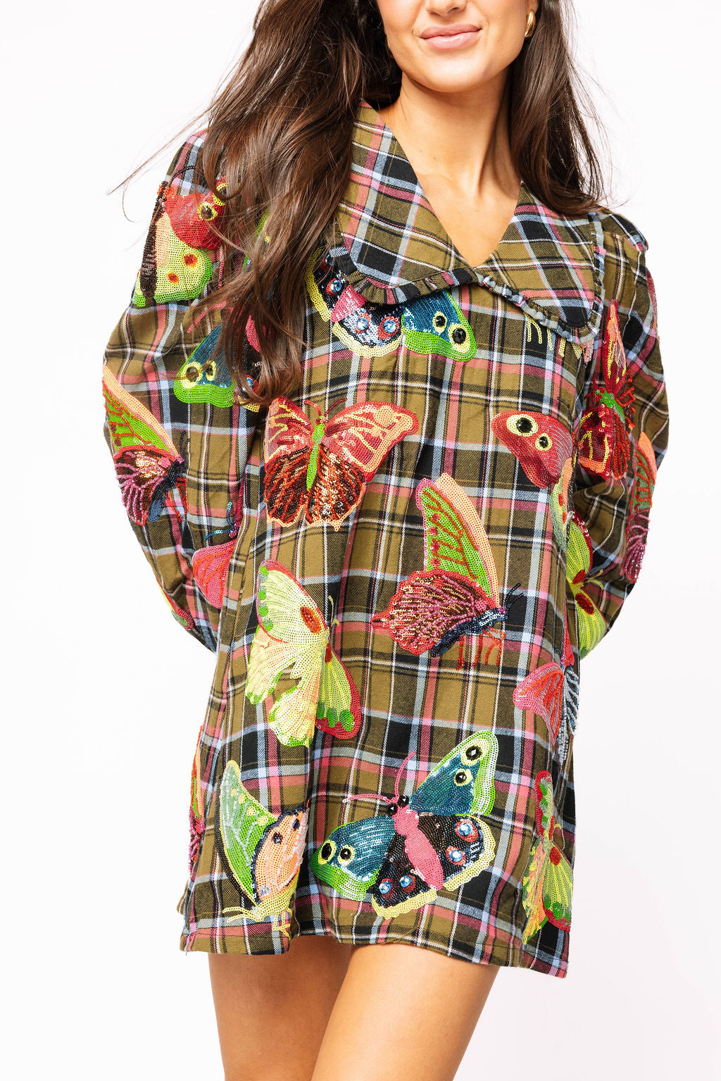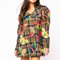 Sample Multi Plaid Neon Butterfly Oversized Collar Dress