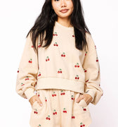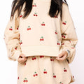 Add a pop of fun to your cozy days with the Tan Jeweled Cherry Sweatshirt. This playful piece features sparkling cherry details that catch the light—and attention—while keeping you comfy and warm. Perfect for lounging or casual outings, it’s a sweet way to brighten your wardrobe with a little sparkle and charm.
