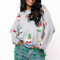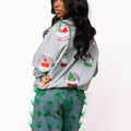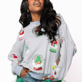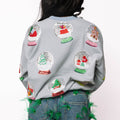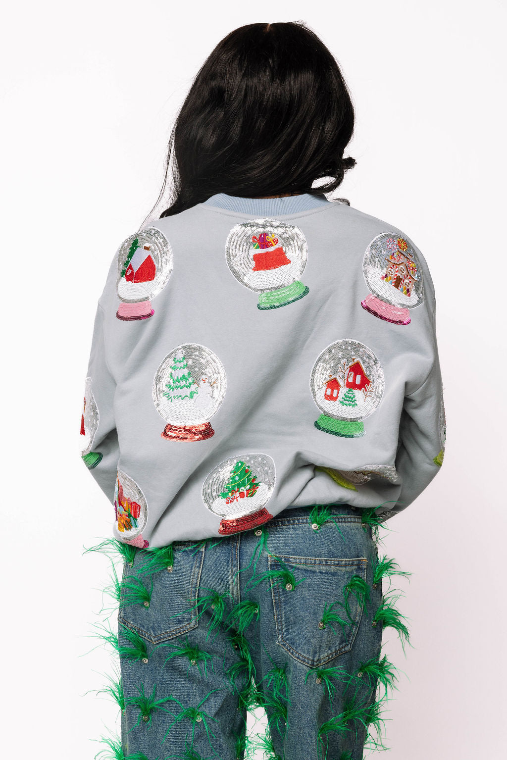 Cozy up in our playful Grey Christmas Snow Globe Sweatshirt, adorned with charming snow globe designs on both front and back. Perfect for keeping warm during chilly winter nights and adding festive cheer throughout the holiday season. Its soft, grey fabric brings a splash of winter magic to your wardrobe!