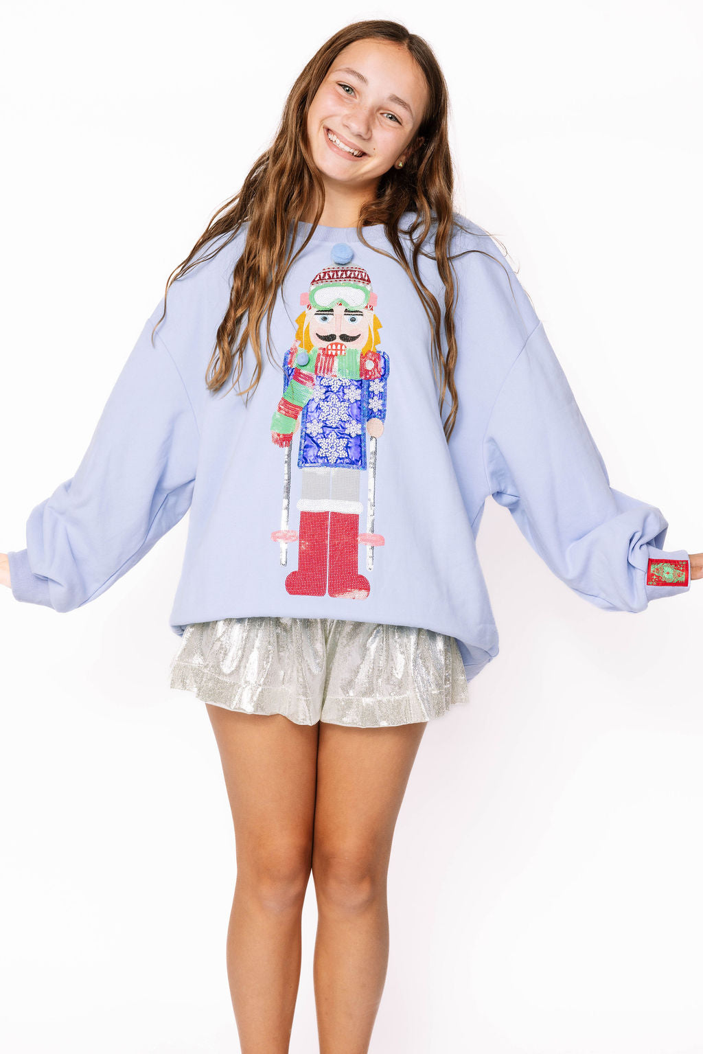 Kids Powder Blue Skiing Nutracker Sweatshirt