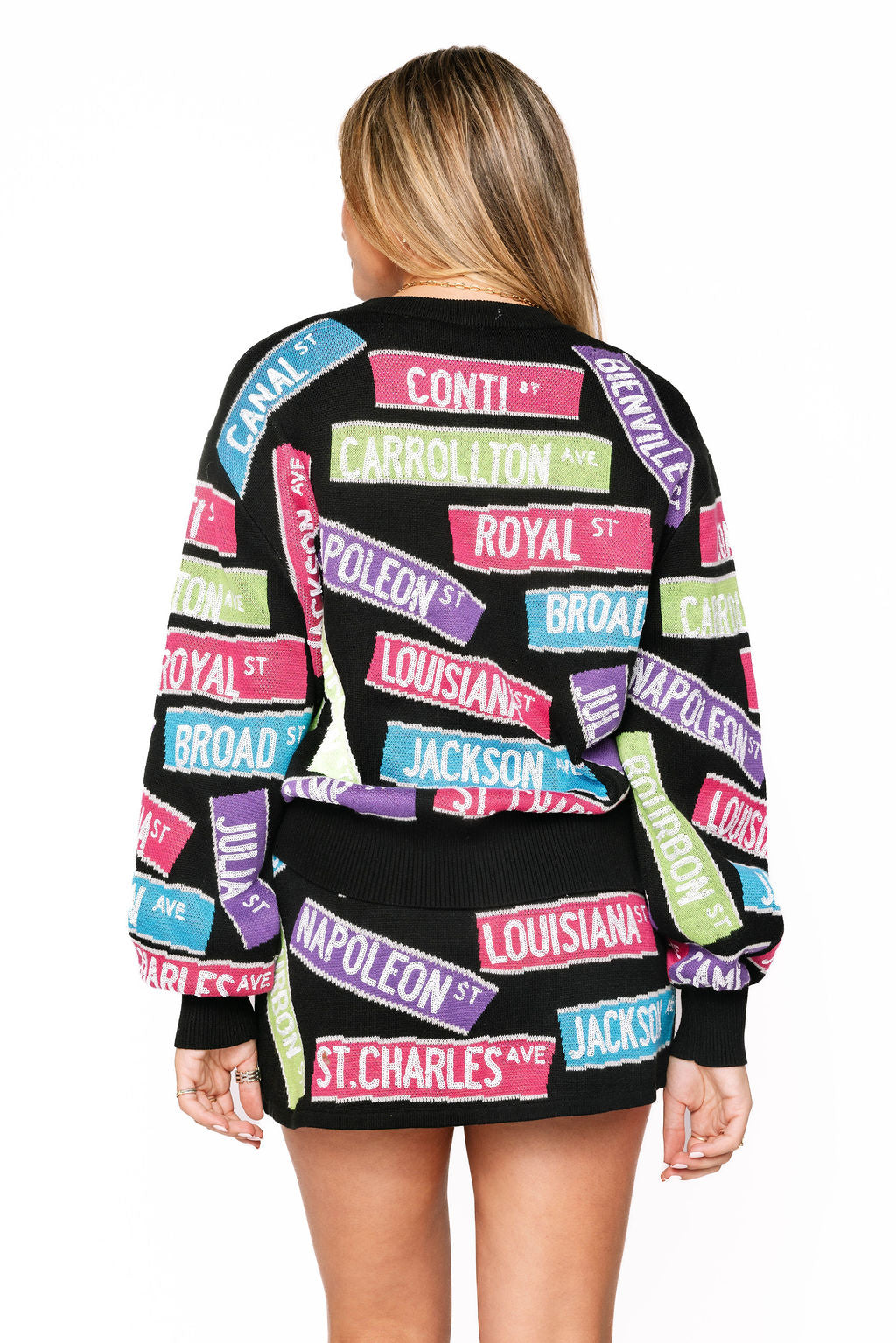 Sample Black Multi NOLA Street Signs Sweater & Skirt Set