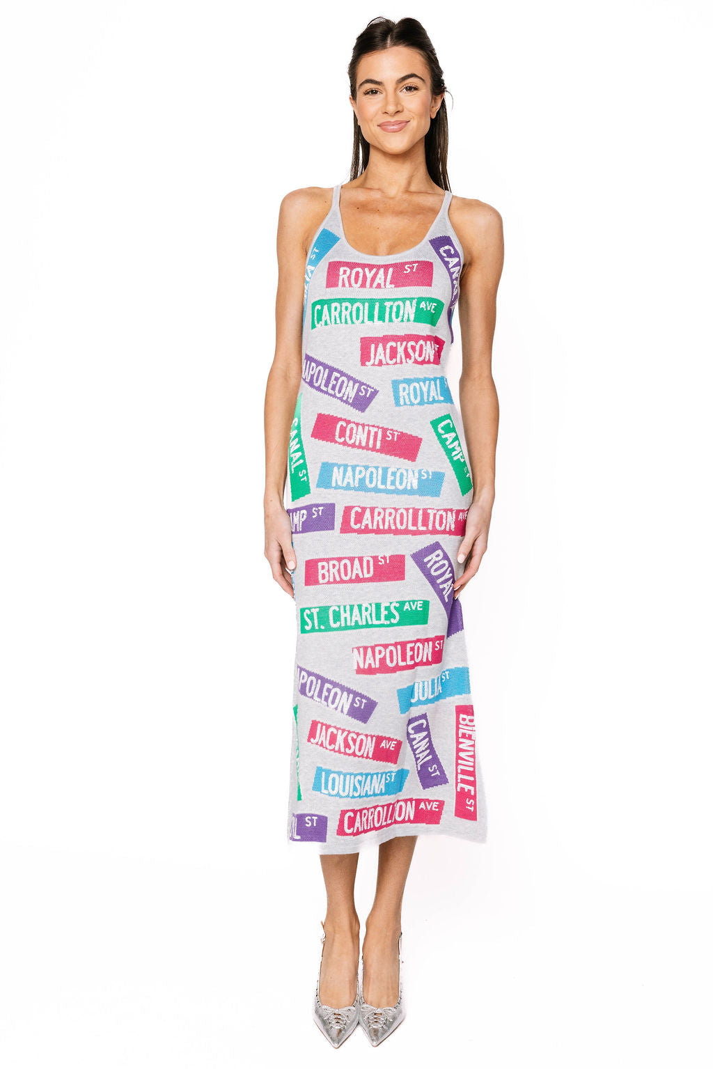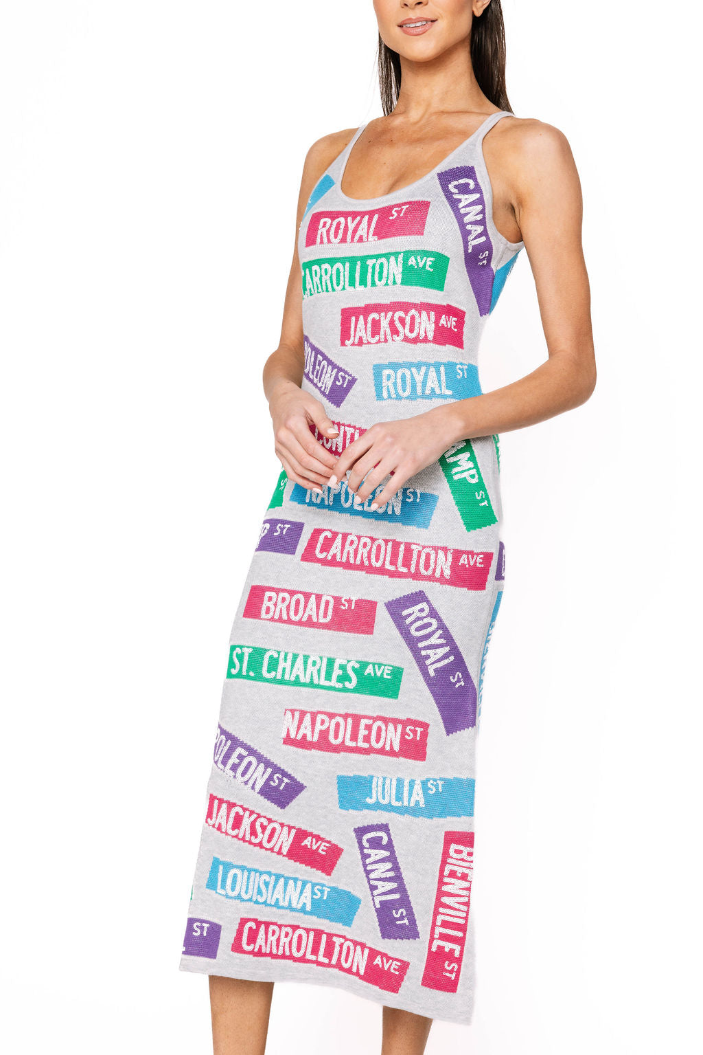 Channel New Orleans charm in this grey sweater midi dress, complete with iconic NOLA street sign details that celebrate the city's vibrant soul. Soft, cozy, and undeniably cool, it's the perfect blend of comfort and character for anyone who loves a little local flavor in their fashion. The midi length keeps it sophisticated while the playful street sign graphics add personality and conversation-starting style. Wear it as a love letter to the Big Easy—or just because you want to look effortlessly chic while channeling that laid-back, festive vibe.