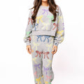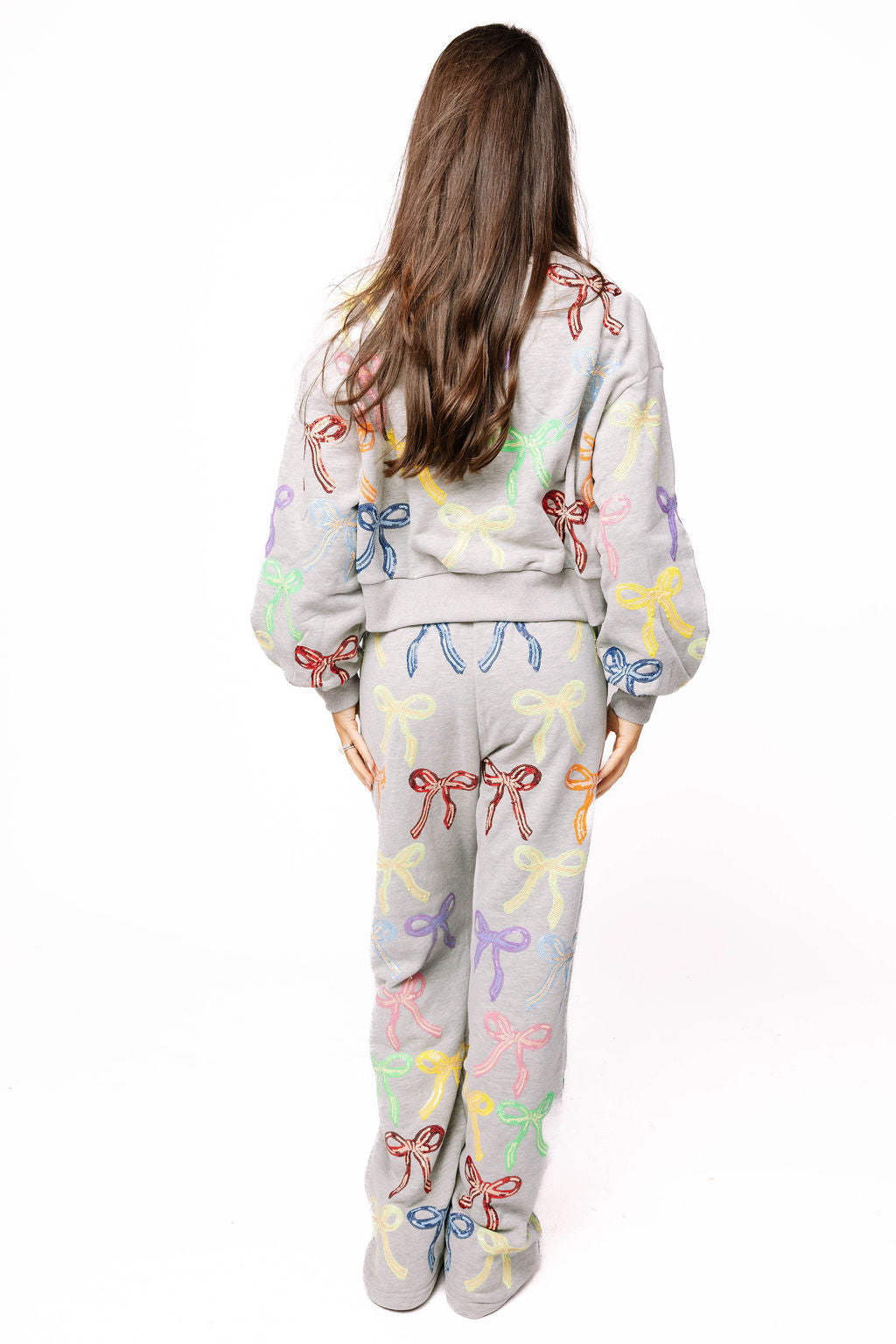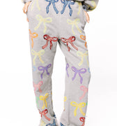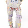 Add a pop of fun to your comfort wardrobe with these grey sweatpants featuring a vibrant multi-color bow design. Perfect for lounging or casual outings, they blend cozy softness with a playful splash of color that brightens any day. Stay comfy and stylish without saying a word!