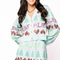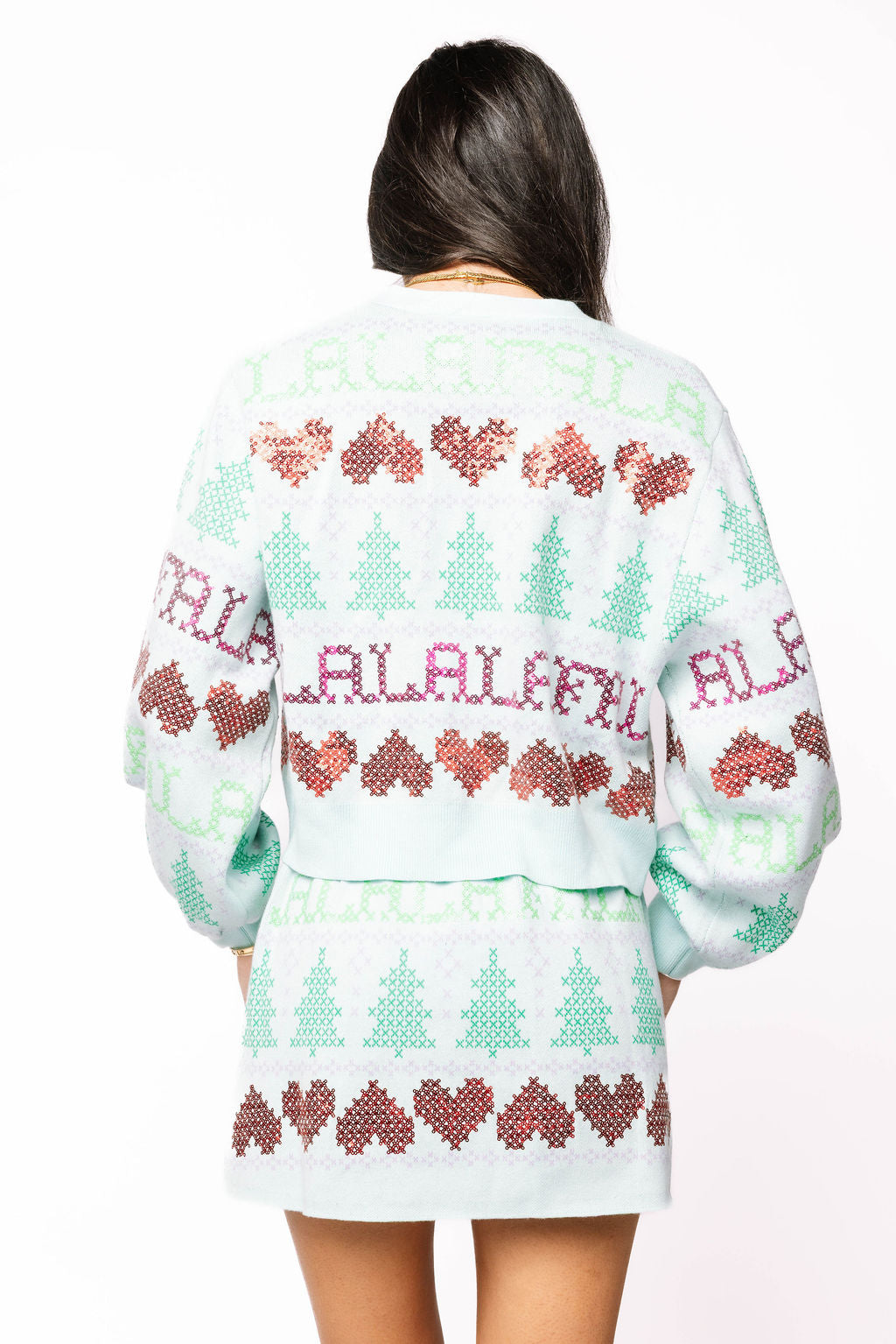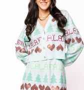 SAMPLE- Mint Needlepoint 'Falalala' Cardigan and Skirt Set