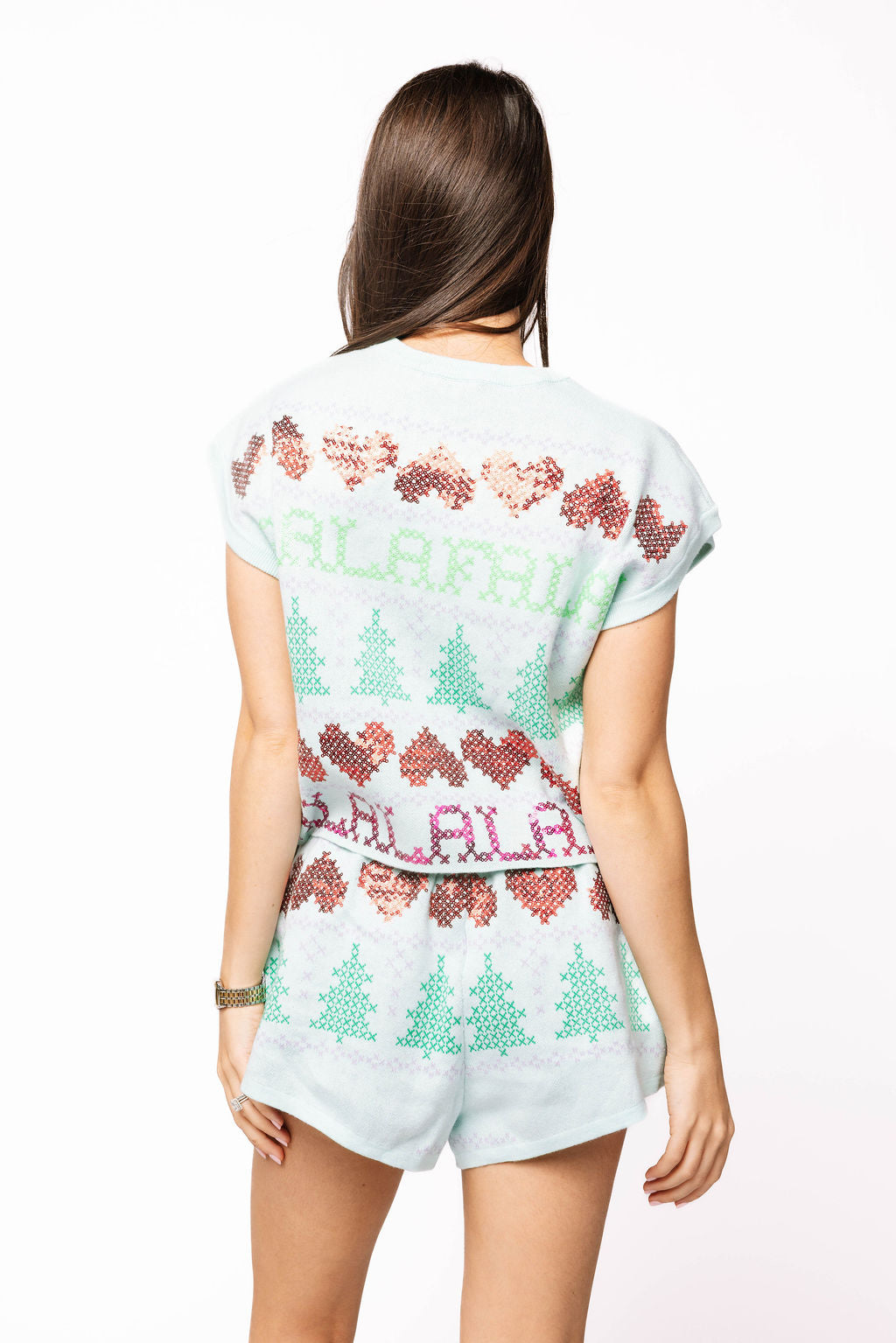 SAMPLE- Mint Needlepoint 'Falalala' Sweater Vest and Short Set