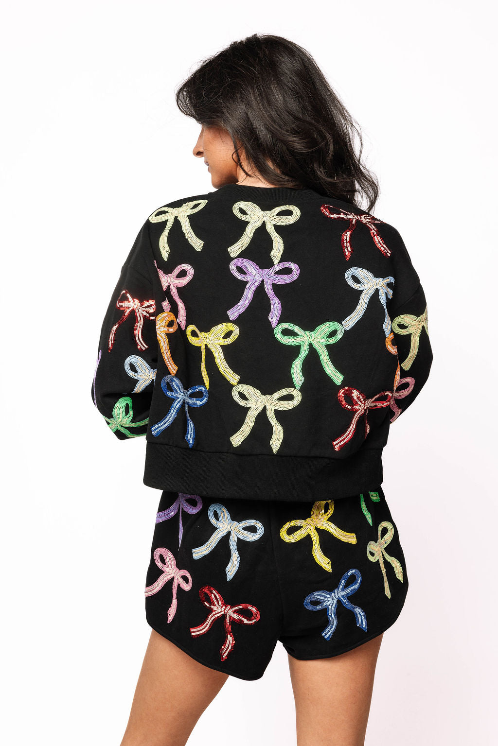 Step into fun with the Black Multi Bow Short! Featuring playful bows scattered across a sleek black background, these shorts add a touch of whimsy to your wardrobe. Comfortable and flirty, they’re perfect for lounging or dancing the day away with a carefree spirit. Embrace your playful side in style!