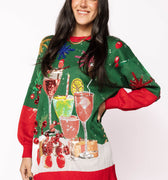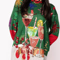 Celebrate the season in style with this Dark Green & Red Christmas Cocktails Sweater Dress. Cozy and festive, it’s perfect for holiday parties or casual winter outings. The rich colors capture the Christmas spirit, while the comfortable fit lets you relax and enjoy every toast. Mix holiday cheer with playful charm in one irresistible dress!