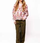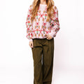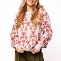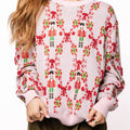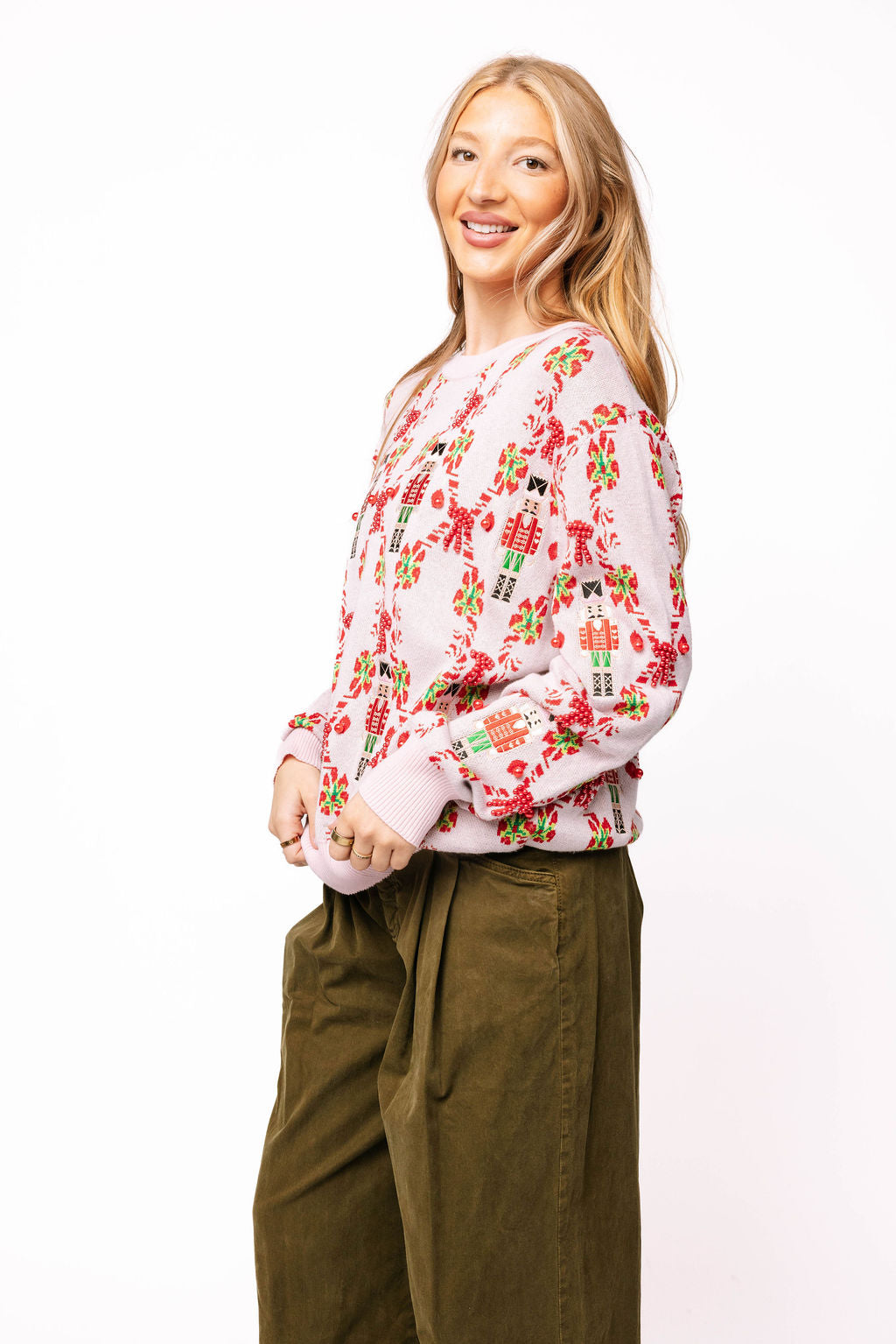 This light pink sweatshirt brings festive fun with charming nutcracker and candy cane details. Cozy and cute, it’s perfect for spreading holiday cheer. Pair it with the matching bottoms to complete your playful, holiday-ready look!