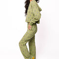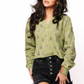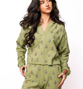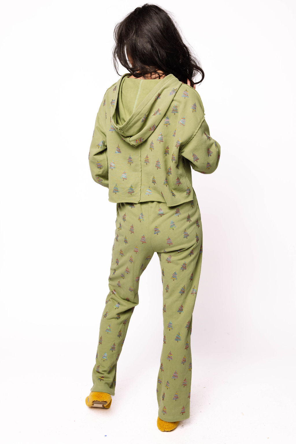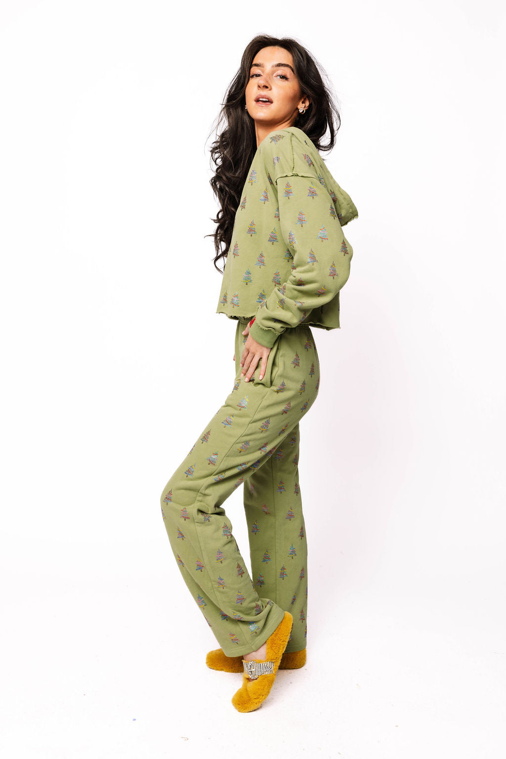 Stay cozy and festive in this mossy green hoody adorned with playful sequin Christmas trees. The soft sweatshirt pairs perfectly with matching bottoms, making it an ideal set for holiday fun or relaxed winter days. Add a touch of sparkle to your seasonal wardrobe while staying comfy all day long!