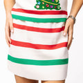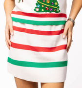 This festive white sweater skirt with cheerful red and green stripes brings holiday joy to your wardrobe. Cozy and stylish, it's perfect for mixing and matching, especially paired with our "Sparkle Season" Sweater or Top to complete your merry look. Celebrate the season in comfort and sparkle!