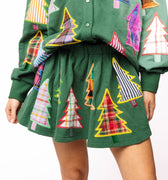 Dark Green Multi Plaid & Stripe Christmas Tree Pleated Skort