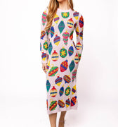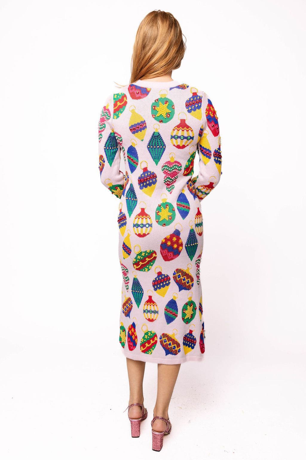 Celebrate the season in style with this Light Pink Multi Jeweled Ornament Knit Midi Dress. Cozy and warm, its festive jeweled accents add a sparkling touch perfect for holiday parties. The midi length offers comfort and charm, making it your go-to dress for merry moments and cozy gatherings.
