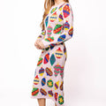 Light Pink Multi Jeweled Ornament Knit Midi Dress