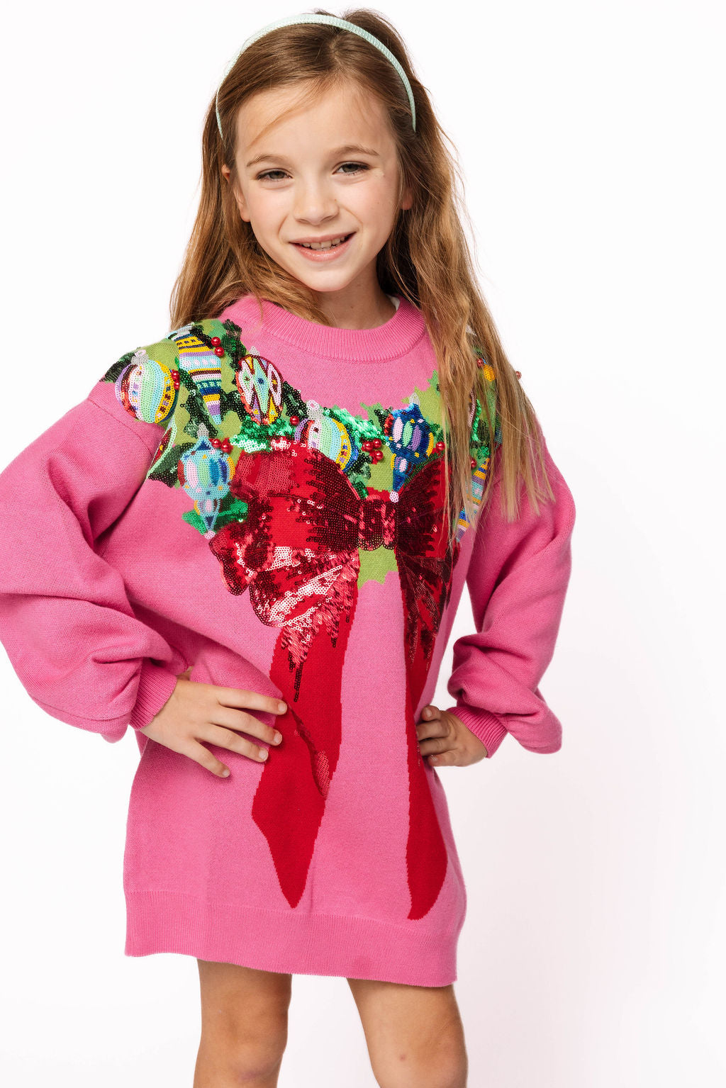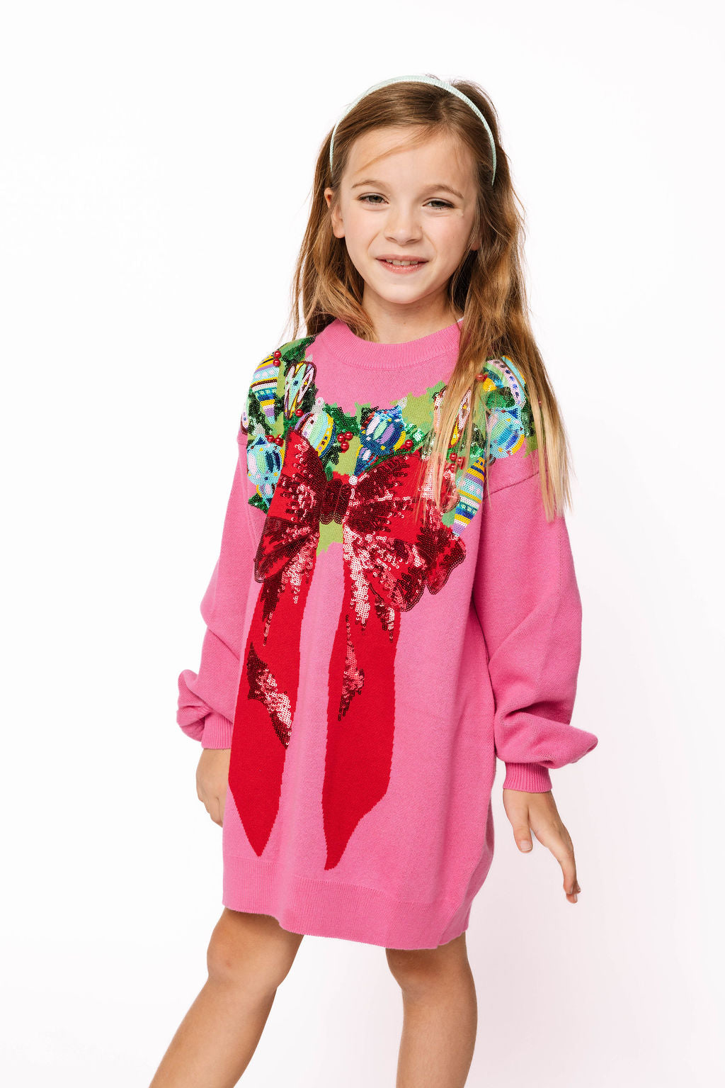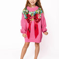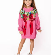 Kids Bright Pink Multi Wreath Around Neck Sweater Dress