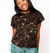 SAMPLE- Black Diagonal Holly Tee