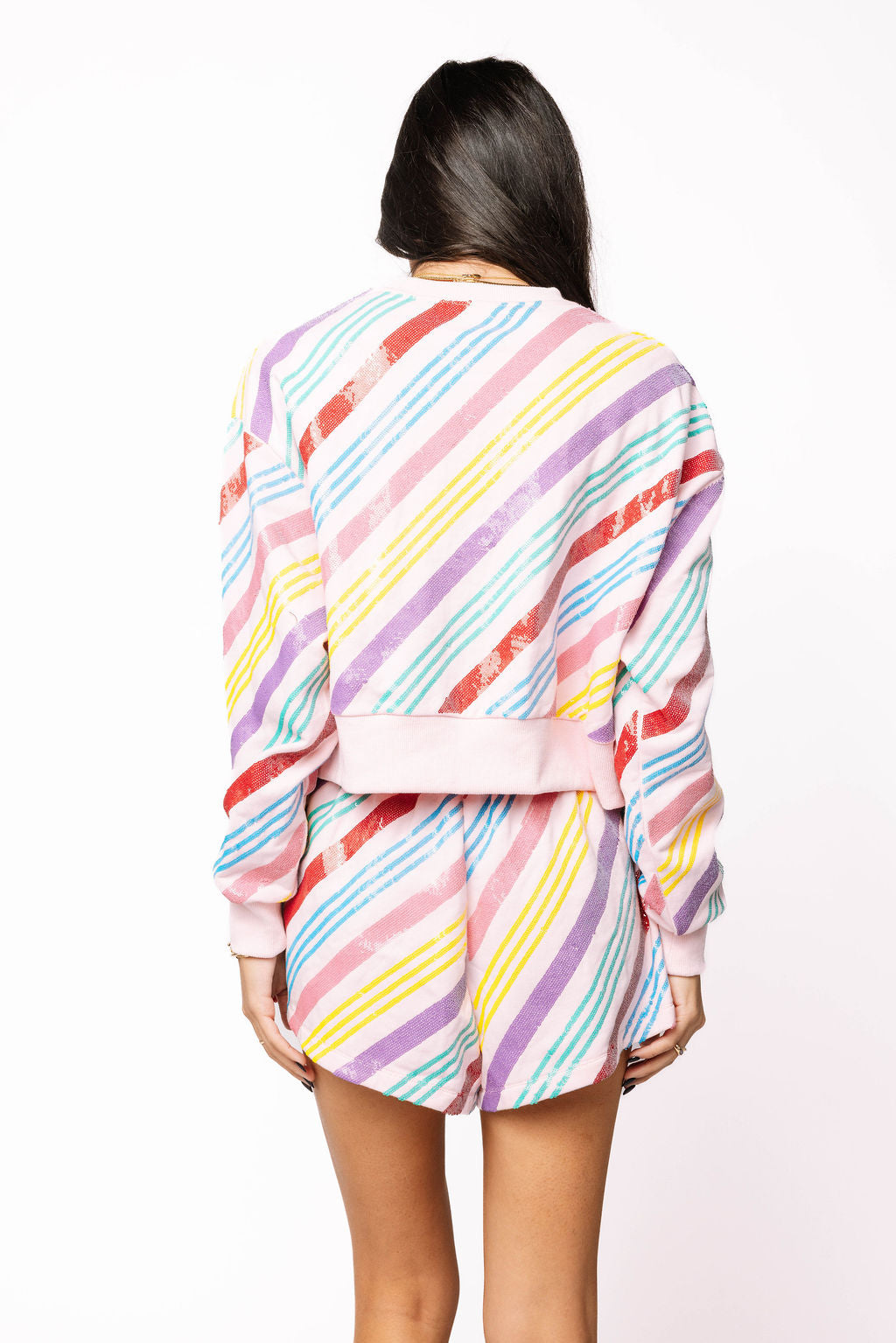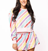 SAMPLE- Light Pink and Multi Candy Cane Stipe Sweatshirt and Short Set