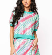 SAMPLE- Mint & Pink Peppermint Stripe Sequin Top and Skirt Set