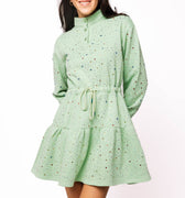 SAMPLE- Pale Green Scattered Multi Rhinestone Dress