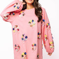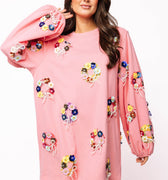SAMPLE- Pink Multi Sequin Flower Wreath Long Sleeve Dress