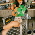Our pieces are made to sparkle for a lifetime! To care for your Queen of Sparkles purchase we recommend hand washing with cold water and hanging to dry.