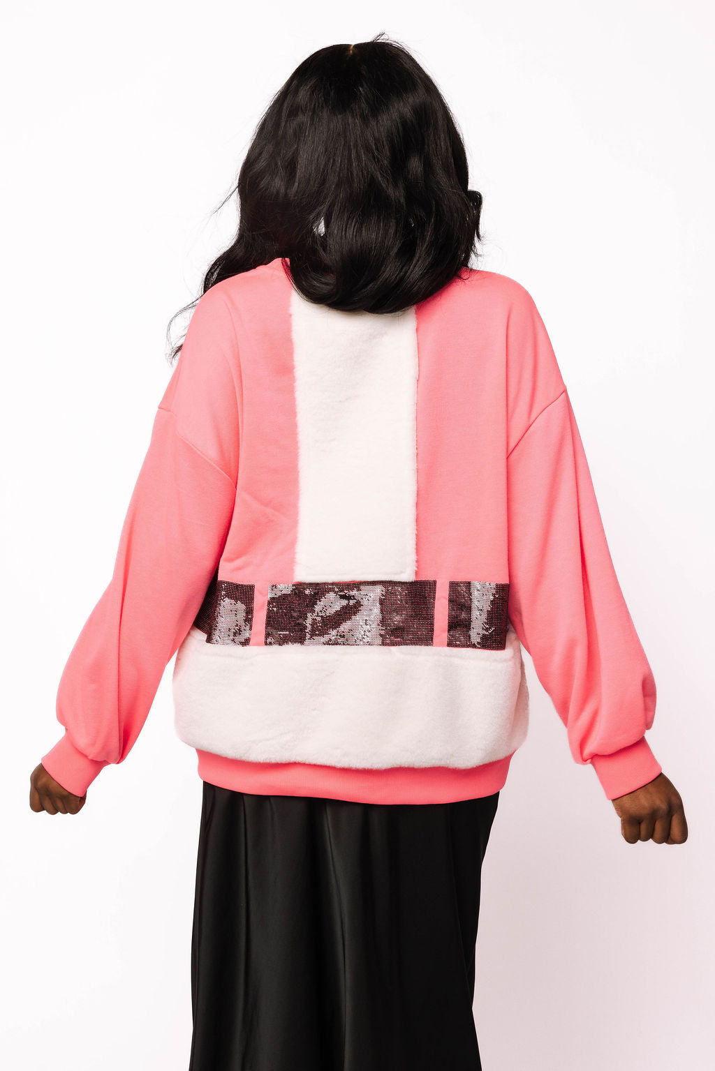 Neon Pink Fuzzy Santa Coat Sweatshirt