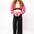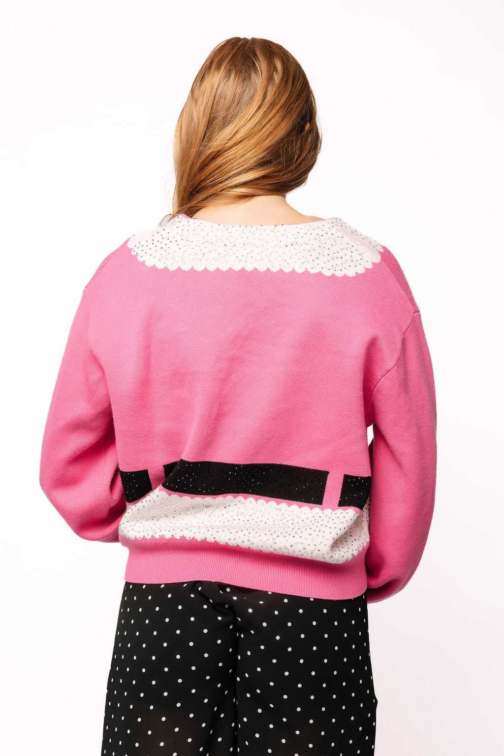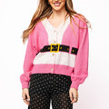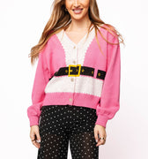 Bring festive fun to your holiday wardrobe with this Pink Santa's Coat Cardigan. Designed to mimic Santa's iconic coat, its playful pink hue and slightly oversized fit make it the perfect cozy choice for holiday parties. Embrace the season with warmth and cheer in this charming twist on a holiday classic.