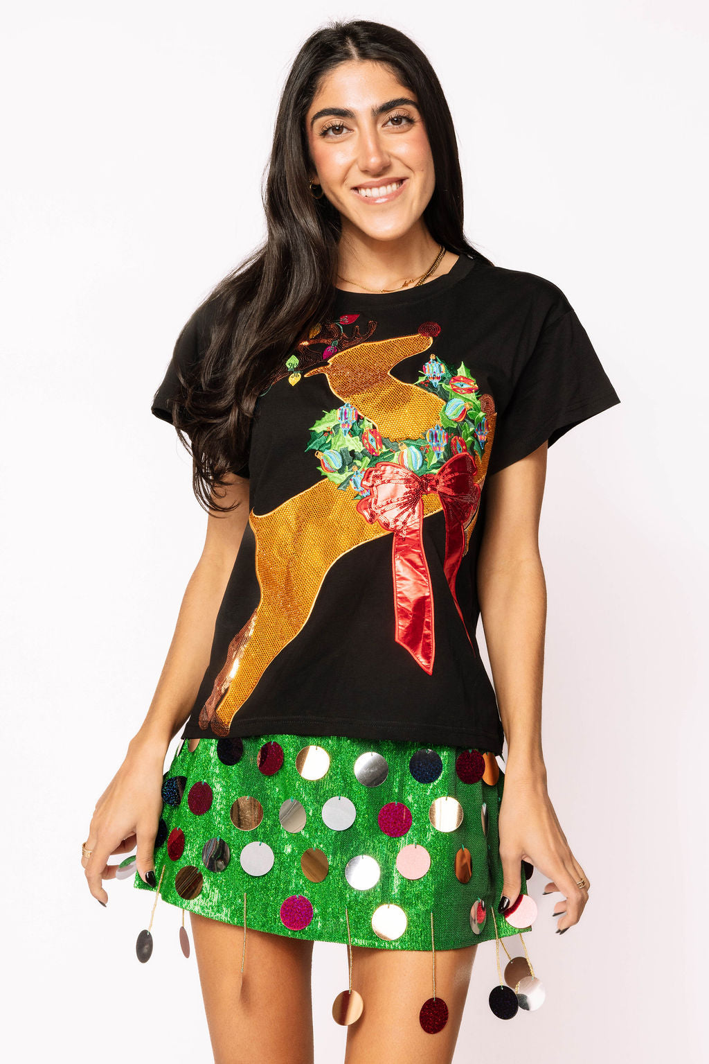 Celebrate the holiday spirit with our Black Rudolph Wearing A Wreath Tee! Featuring a playful Rudolph adorned with a festive wreath, this tee brings a fun twist to your seasonal wardrobe. Crafted for comfort and style, it’s perfect for cozy winter days or holiday gatherings where you want to spread cheer with a smile.