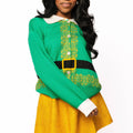 Get ready to sparkle this holiday season with our Gold Rhinestone Elf Skirt! This fun and festive piece brings a glittering twist to your favorite elf look. Pair it with the matching cardigan to complete your playful holiday outfit and shine bright at every celebration. Perfect for spreading cheer with a touch of sparkle!