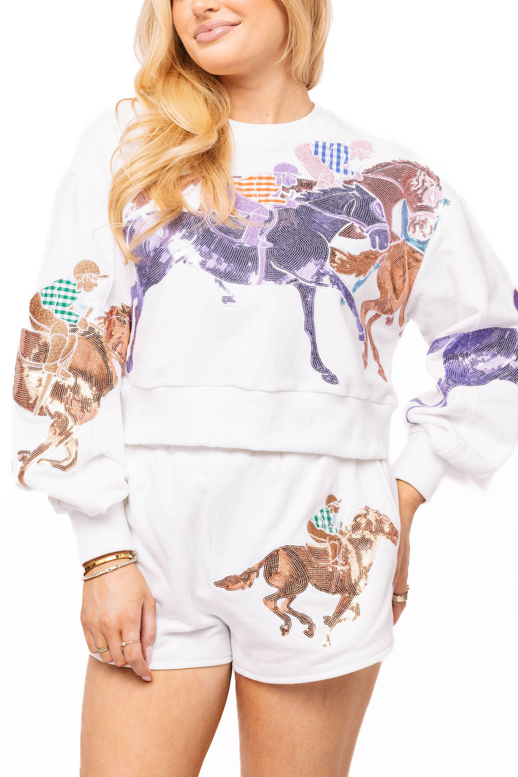 White Multi Jockeys on Horses Sweatshirt