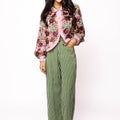 This pink plaid cardigan brings holiday cheer with sparkling jeweled poinsettias and an irresistibly cute collar. Perfectly cozy yet festive, it pairs effortlessly with the matching skirt for a playful, put-together look that shines at any seasonal gathering. Add a touch of sparkle and warmth to your wardrobe with this charming button-up sweater.