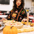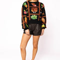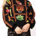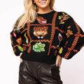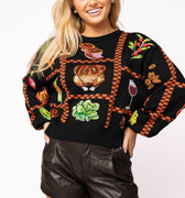 Celebrate Thanksgiving in style with this Black Checkered Thanksgiving Icon Sweater. Adorned with playful sequin icons like turkey, wine, and more, it adds festive sparkle to your holiday look. Designed to fit true to size, it ensures comfort while keeping your outfit fun and seasonal. Perfect for gatherings or cozy days at home!