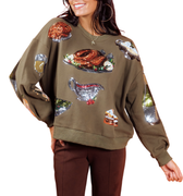 Embrace your quirky side with the Olive Green Queen of Turkey Sweatshirt. Cozy and fun, this playful sweatshirt lets you rule the day with a splash of color and a touch of whimsy. Perfect for lounging or casual outings, it’s your new favorite way to stay comfy and show off your unique style.