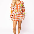 Celebrate Thanksgiving in style with this playful Orange Checker Knit Skirt featuring a fun food-on-plate pattern. Its cozy knit fabric keeps you comfortable while the bright orange checker design adds a cheerful, festive touch. Perfect for holiday gatherings, this skirt combines whimsy and warmth to make your seasonal outfit delightfully unique.