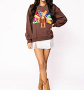 Brown Rainbow Flower Turkey Sweatshirt