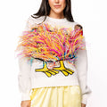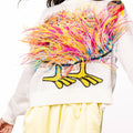 Get ready to steal the Thanksgiving spotlight with our Ivory Feather Turkey Sweater! Decked out with real rainbow feathers, this quirky sweater lets you strut your stuff and bring festive fun wherever you go. Cozy, colorful, and undeniably playful—this is the perfect way to make a bold statement while staying comfy all day long. Gobble up the compliments!