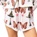 These knit shorts are adorned with playful butterflies, brooms, and wands, perfect for fans who love a touch of magic in their everyday style. Designed with a comfy elastic waistband, they’re soft, cozy, and easy to wear for lounging or layering into your most spellbinding looks. Pair them with the matching cardigan for the full enchanted set.