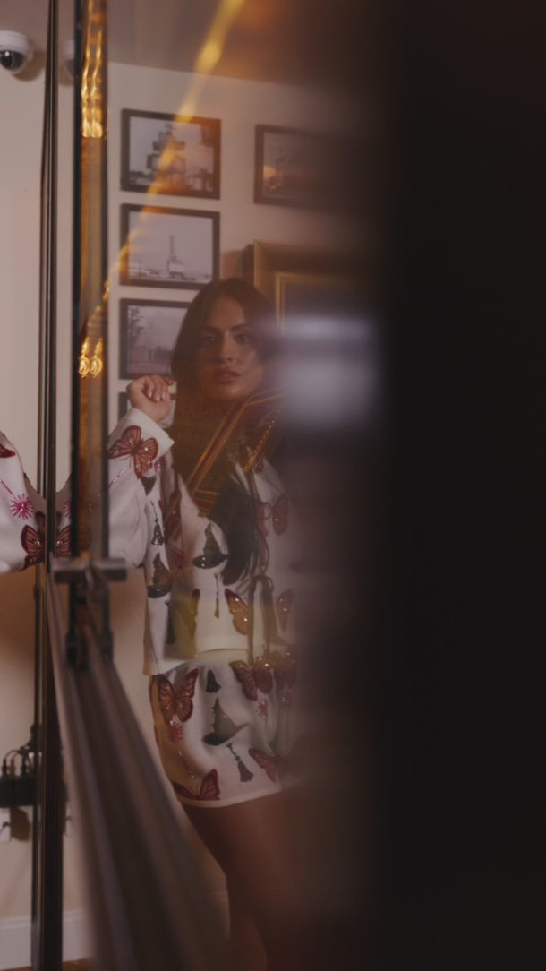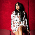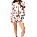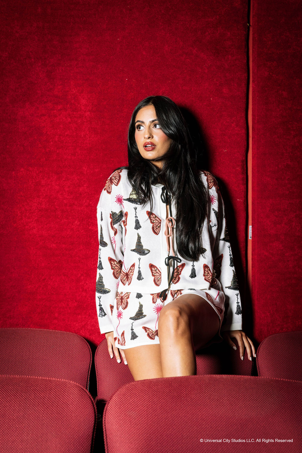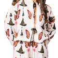 This tie-front cardigan features delicate butterflies alongside classic broom and wand motifs, blending whimsy and witchy vibes in one cozy piece. With a true-to-size fit, it’s perfect for layering on crisp days or adding a touch of enchantment to any outfit. Pair it with the matching shorts for the full magical look, because a little magic goes a long way.