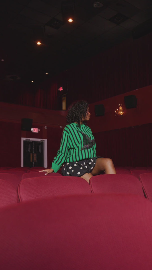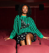 Channel Elphaba’s iconic style with this slightly oversized green and black striped sweater, complete with a witch hat graphic that’s pure Wicked magic. Bold yet wearable, it’s a cozy tribute to everyone’s favorite misunderstood witch—perfect for fans who walk their own path.